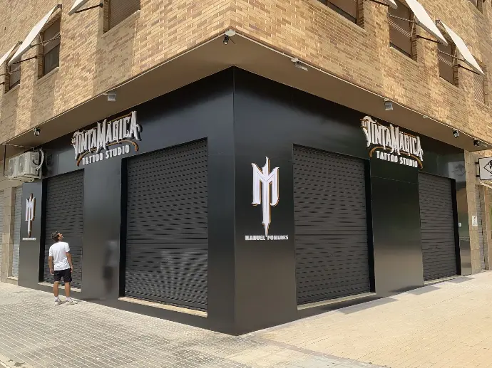 Letras corporeas pvc negro + Pintar fachada + Placa metacrilato